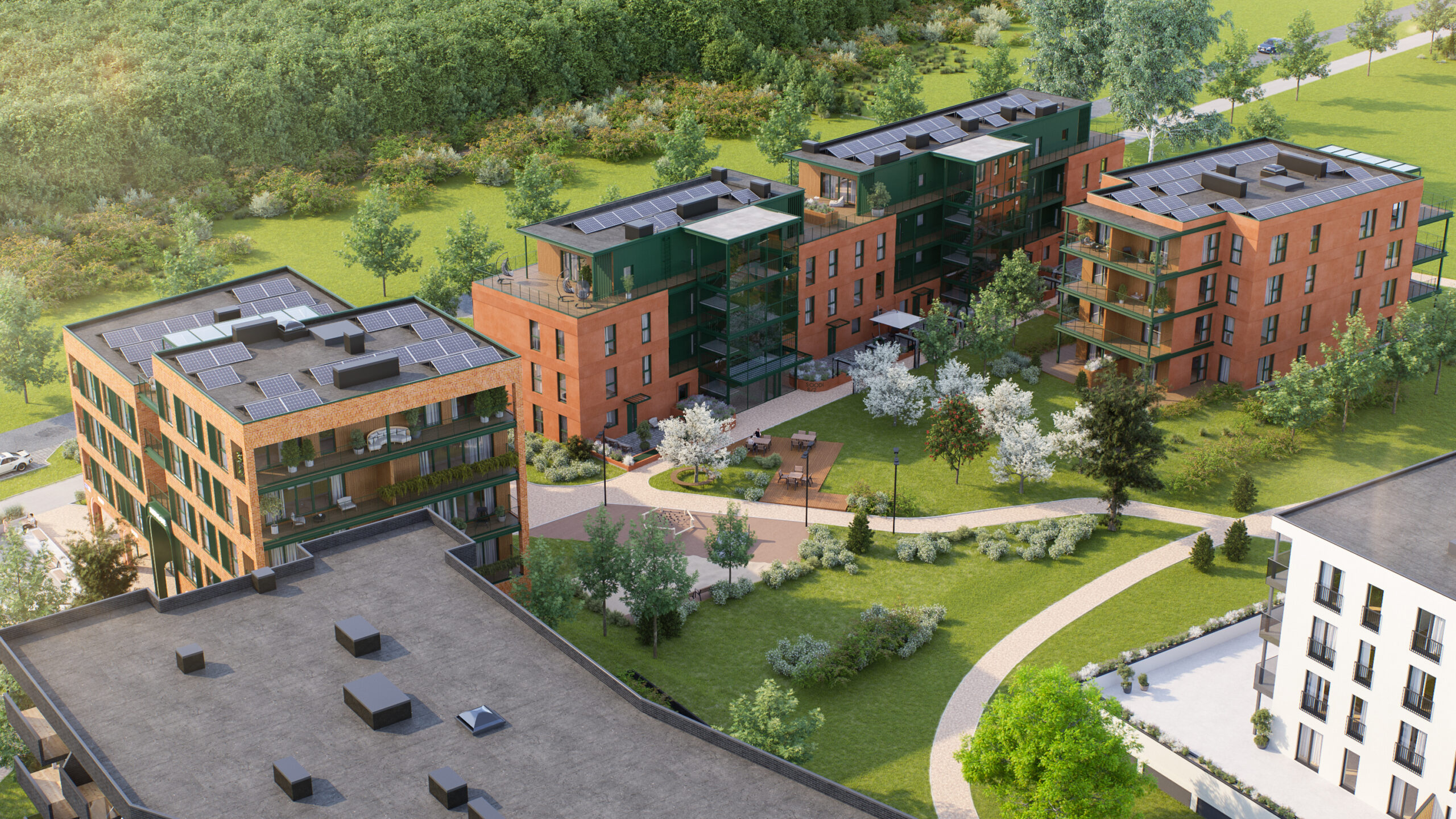 Kui unistad kodust, kus hommikul tervitavad sind linnulaul ja viljapuude lõhn, siis Hoovimaja (Soodi 6/3) on just Sulle. Rohelise sisehoovi südames asuv Hoovimaja on ümbritsetud viljapuude ja ronitaimedega, pakkudes rahu ja privaatsust keset linna. Esimese korruse suured päikselised terrassid avanevad hoovialale, kus lapsed saavad mänguväljakul mängida.